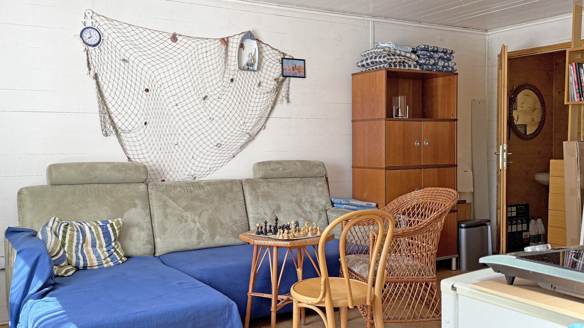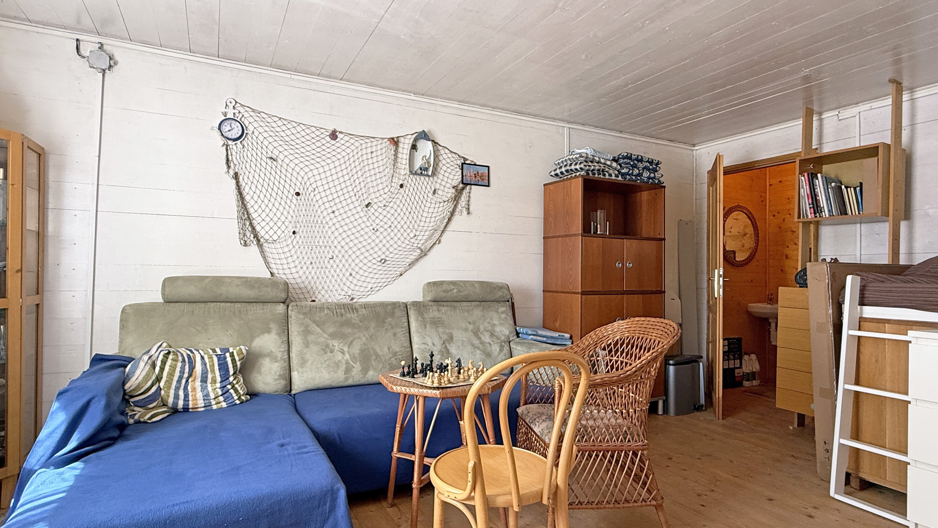Chatka je vybavená aj malou kuchynskou linkou, s drezom s tečúcou vodou, prietokovým ohrievačom, chladničkou s výparníkom a varnou elektrickou platničkou. Možnosť okamžitého využívania chatky aj na prespanie a dobudovania podľa vlastných predstáv. Na studňovú vodu bol realizovaný rozbor a je nezávadná. Zariadenie môže zostať alebo podľa dohody.