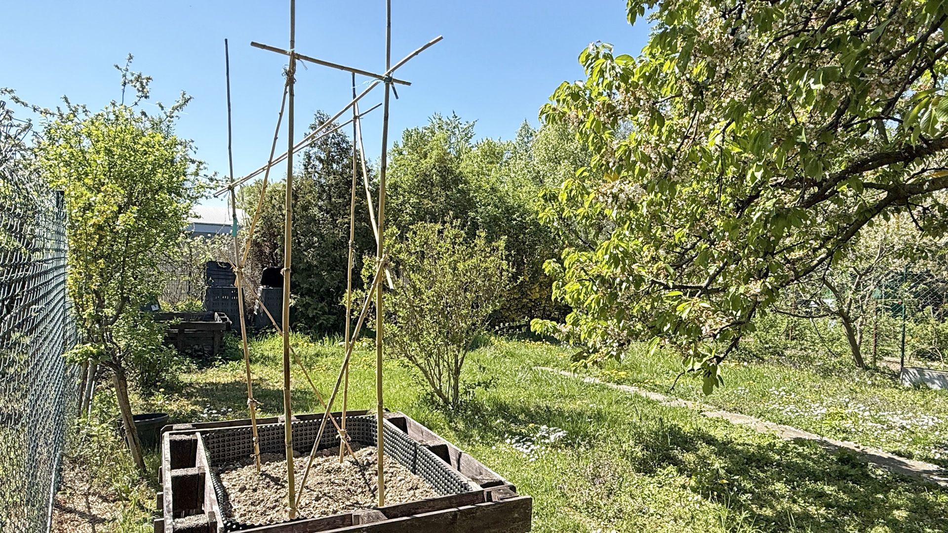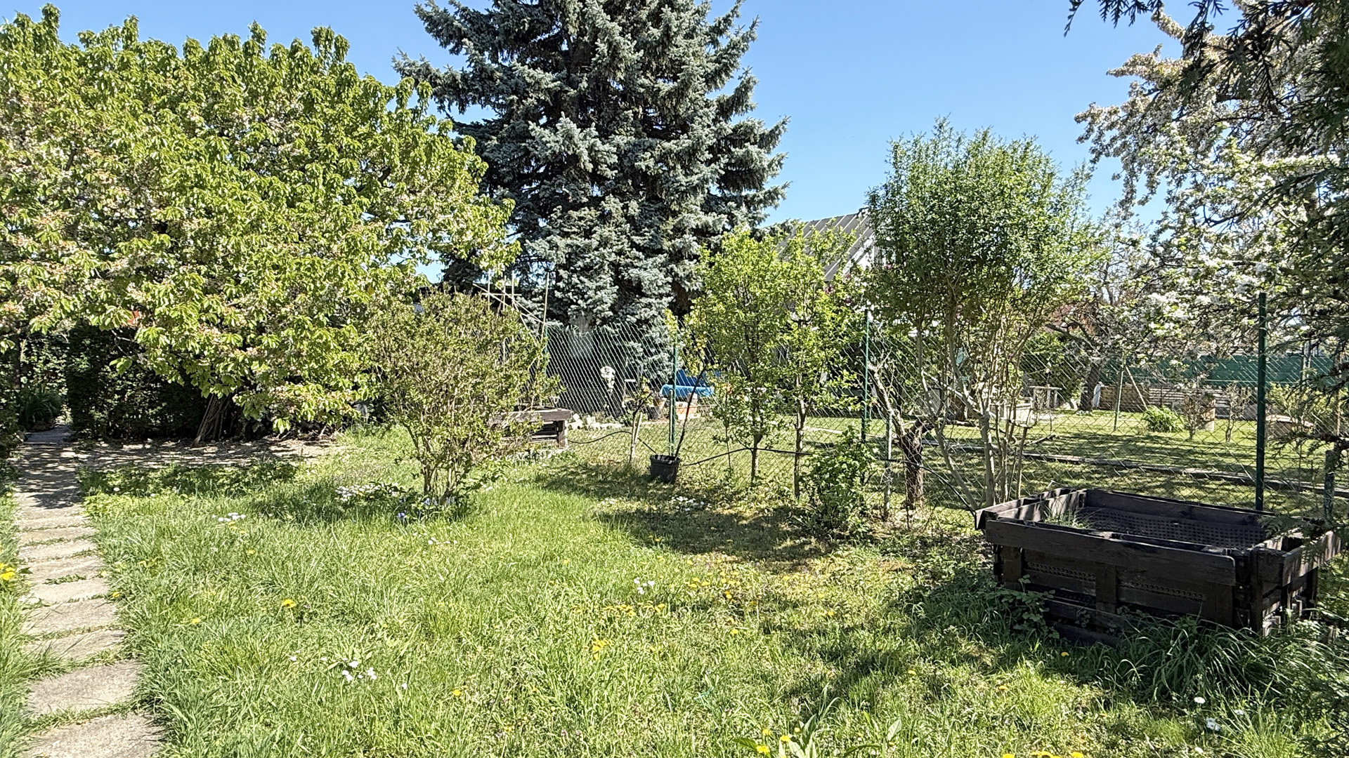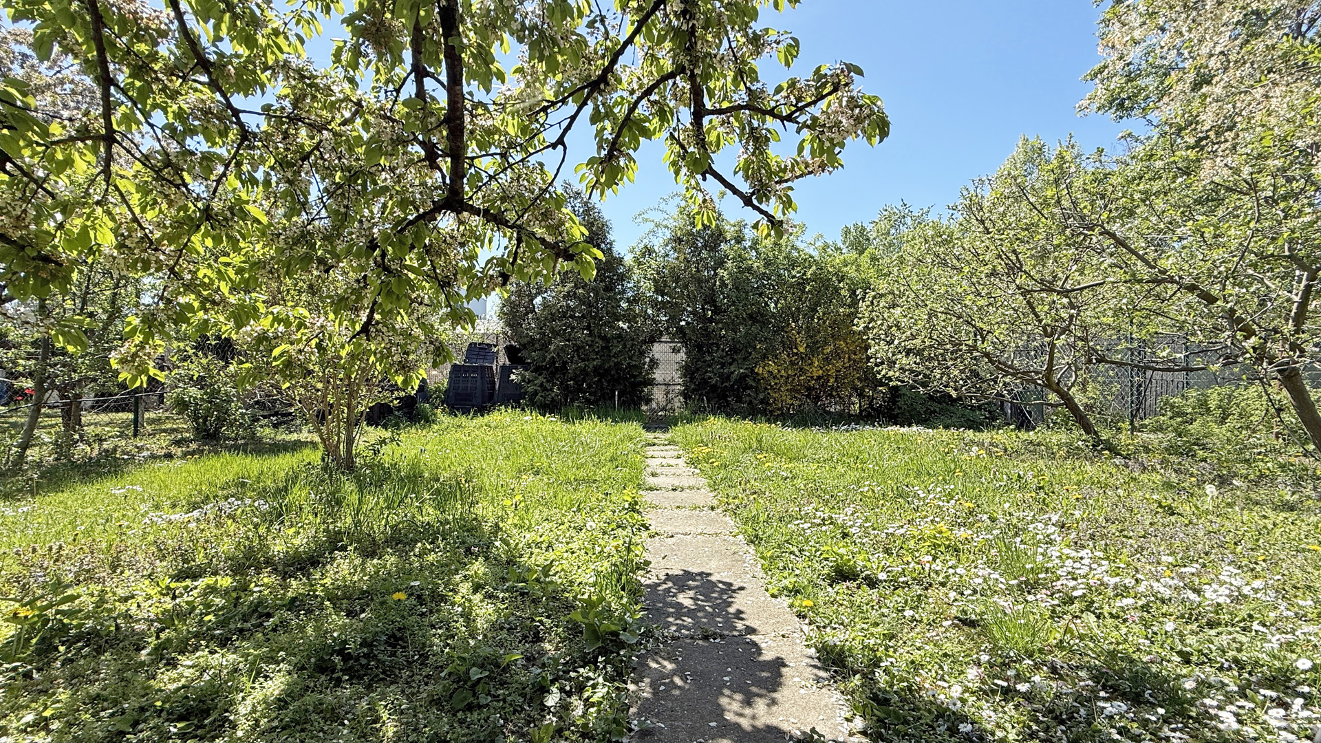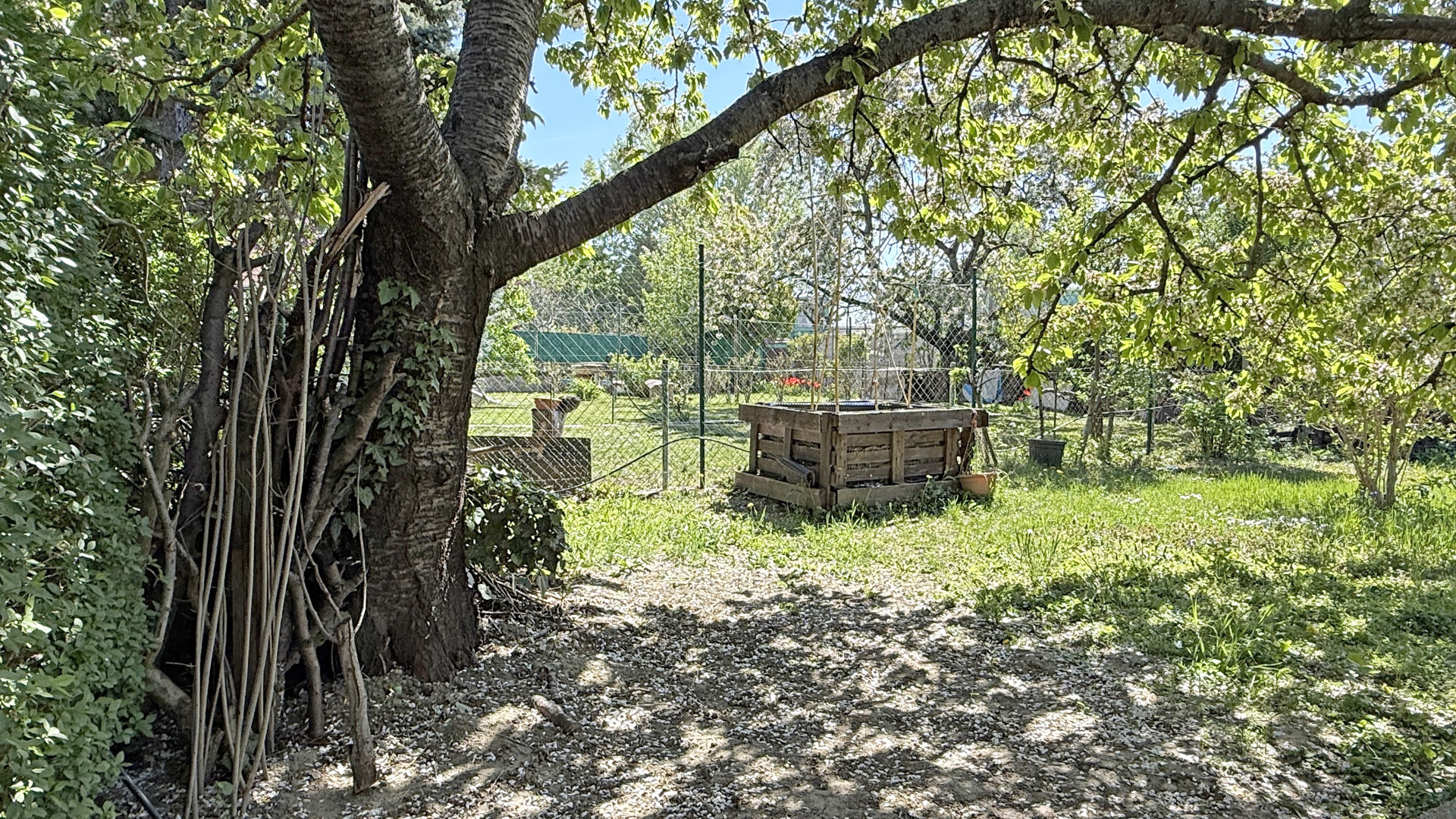 Pozemok má šírku 12m a dĺžku 22m. Na pozemku je vlastná studňa, elektrické čerpadlo Grundfos Presscontrol PC22 (v pivnici), elektrina a napájací bod pre zavlažovanie pozemku. Zavlažovanie je vyriešené aj automaticky pomocou nastaviteľného časovača. Pozemok je oplotený novším pletivom, nachádzajú sa na ňom stromy – dve jablone, višňa, čerešňa (krásne a chutné plody), ďalej ríbezle, jeden koreň hrozna, živý plot, trávnik a zopár vyvýšených záhonov.